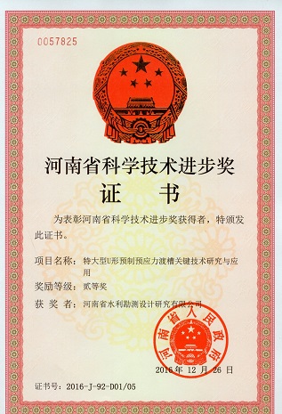 新年將至,公司再傳捷報!公司依托南水北調中線工程沙河渡槽所做的科研成果《特大型U形預應力渡槽關鍵技術研究與應用》榮獲河南省科學技術進步二等獎!希望在新的一年,大家再接再厲,再創佳績!