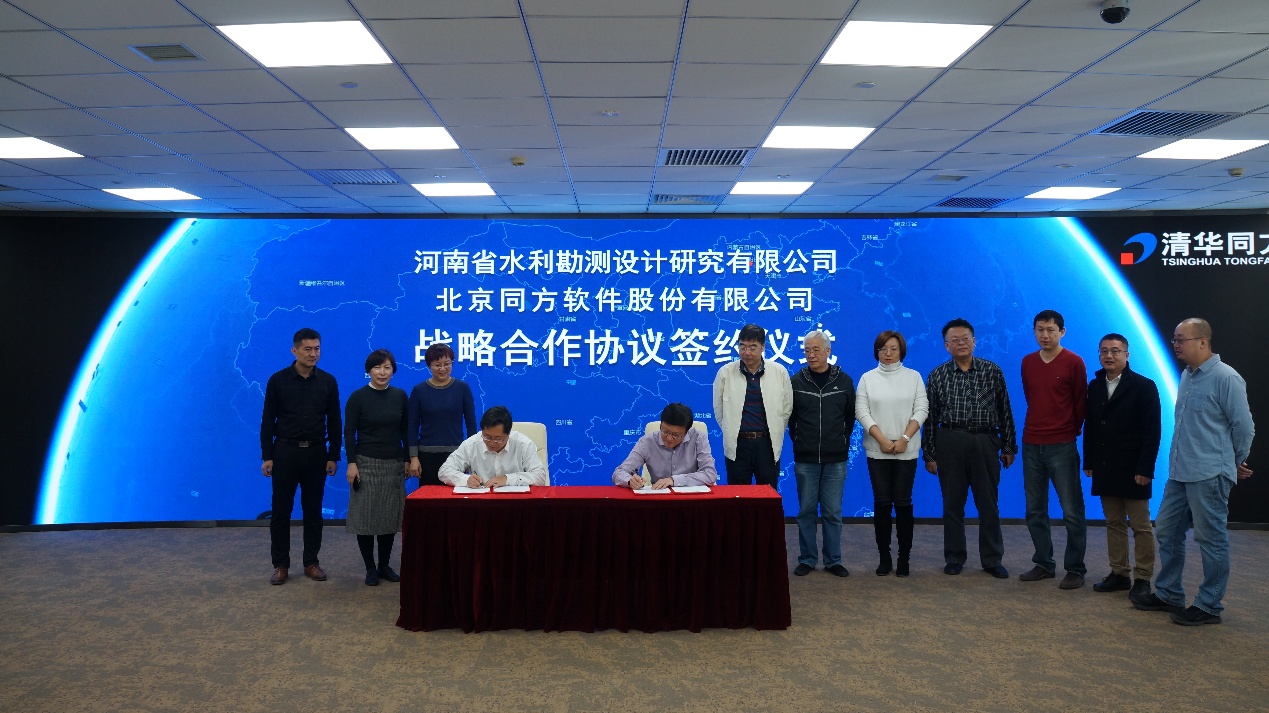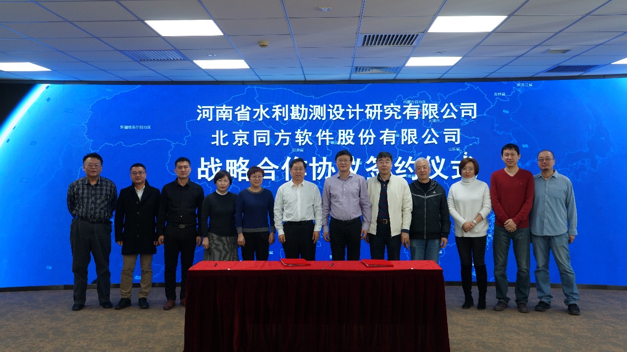 2019年3月18日,河南省水利勘測設(shè)計研究有限公司與北京同方軟件股份有限公司在北京舉行戰(zhàn)略合作協(xié)議簽約儀式。同方股份有限公司副總裁周俠、大數(shù)據(jù)產(chǎn)業(yè)部副總經(jīng)理李小華、北京同方軟件股份有限公司副總經(jīng)理侯小龍、大數(shù)據(jù)技術(shù)中心總經(jīng)理郝斌、大數(shù)據(jù)技術(shù)中心副總經(jīng)理石大為、水務(wù)事業(yè)部總經(jīng)理葛彥超,河南省水利勘測設(shè)計研究有限公司董事長翟淵軍、副總經(jīng)理賈少燕、數(shù)字工程院院長高英、數(shù)字工程院總工張玉明等出席簽約儀式。