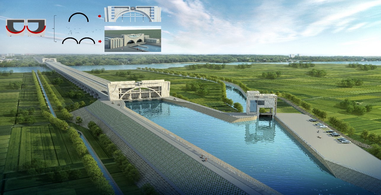 南水北調(diào)中線工程總干渠控制性建筑物有其固有的自身特點,其結(jié)構(gòu)布局須滿足水工建筑物設(shè)計規(guī)范,以及閘、機、泵等設(shè)備安裝的要求。建筑景觀設(shè)計專業(yè)需要與其他相關(guān)專業(yè)進行多方面、多頻次的對接與協(xié)調(diào),將建筑景觀設(shè)計方案與水工建筑設(shè)計巧妙結(jié)合,達到“實用、經(jīng)濟、美觀”的效果。