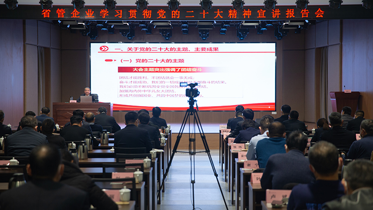 2022年12月12日下午,公司黨委書(shū)記、董事長(zhǎng)翟淵軍帶領(lǐng)公司班子成員現(xiàn)場(chǎng)參加了水投集團(tuán)舉辦的二十大精神報(bào)告會(huì),各支部也組織支部黨員在線參加了學(xué)習(xí)。會(huì)上,水投集團(tuán)黨委書(shū)記、董事長(zhǎng)楊繼成作了《賡續(xù)精神血脈 走好新時(shí)代“趕考”路》的報(bào)告。報(bào)告從大會(huì)主題及主要成果、過(guò)去5年工作和新時(shí)代十年偉大變革、馬克思主義中國(guó)化時(shí)代化、中國(guó)式現(xiàn)代化、全面建設(shè)社會(huì)主義現(xiàn)代化國(guó)家的目標(biāo)任務(wù)、堅(jiān)持黨的全面領(lǐng)導(dǎo)和全面從嚴(yán)治黨、應(yīng)對(duì)風(fēng)險(xiǎn)挑戰(zhàn)、傳承弘揚(yáng)紅旗渠精神等8個(gè)方面對(duì)黨的二十大精神進(jìn)行了全面解讀和輔導(dǎo)。報(bào)告緊扣主題、內(nèi)涵豐富、邏輯嚴(yán)謹(jǐn),對(duì)廣大黨員準(zhǔn)確把握二十大精神有很強(qiáng)的啟迪作用,對(duì)進(jìn)一步落實(shí)落細(xì)二十大精神有很強(qiáng)的指導(dǎo)意義。