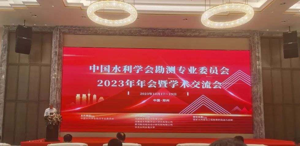 10月19日,中國水利學會勘測專業委員會2023年年會暨學術交流會圓滿閉幕。會議由中國水利學會勘測專業委員會主辦,河南省水利勘測有限公司、河南省水利勘測設計研究有限公司、黃河勘測規劃設計研究院有限公司、華北水利水電大學聯合承辦。會議由專委會秘書長李會中主持,來自全國水利水電勘測單位和高等院校等60多家的170多名代表參加了會議。河南省水利廳一級巡視員李斌成、河南水利投資集團董事長楊繼成到會講話,勘測專委會主任委員司富安出席會議并致辭,省水利勘測公司董事長趙健倉代表承辦單位致歡迎辭。會議邀請中國工程院院士王復明、全國工程勘察設計大師張煒、徐楊青、李清波等9位專家出席會議。公司董事長翟淵軍出席會議。