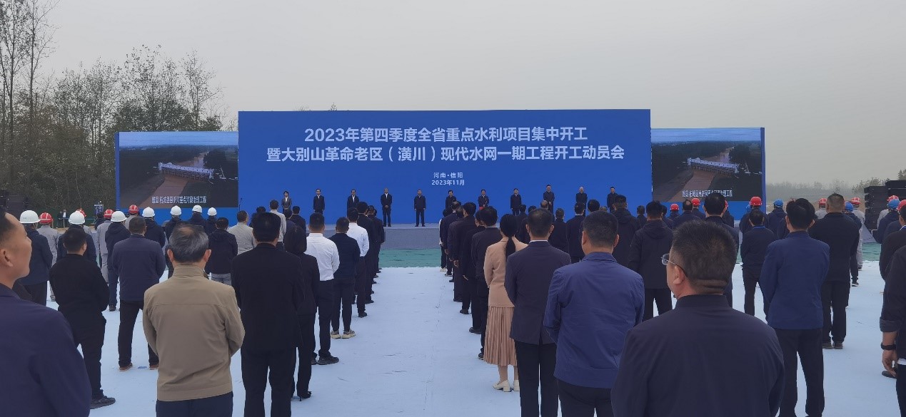 11月4日上午,2023年第四季度河南省重點(diǎn)水利項(xiàng)目集中開工暨大別山革命老區(qū)(潢川)現(xiàn)代水網(wǎng)一期工程開工動(dòng)員會(huì)在信陽(yáng)市潢川縣舉行。儀式由河南省人民政府副秘書長(zhǎng)王曉偉主持,信陽(yáng)市人民政府市長(zhǎng)陳志偉、河南水投集團(tuán)董事長(zhǎng)楊繼成、河南省水利廳廳長(zhǎng)申季維先后致辭,河南省人民政府副省長(zhǎng)孫運(yùn)鋒下達(dá)項(xiàng)目開工令。