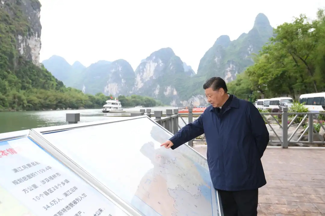 4月25日下午,正在廣西考察調(diào)研的習(xí)近平總書記來到漓江陽朔段,實(shí)地了解漓江流域綜合治理、生態(tài)保護(hù)等情況。