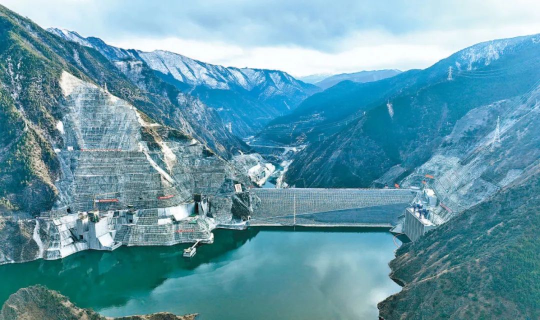 在四川省甘孜藏族自治州雅江縣,雅礱江兩河口水電站大壩填筑到頂。人民日報記者 王明峰攝
