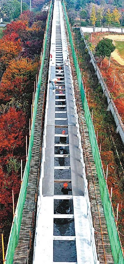 浙江省湖州市安吉縣賦石水庫灌區續建配套與節水改造工程天子湖段渡槽施工現場。毛才傳攝(人民視覺)