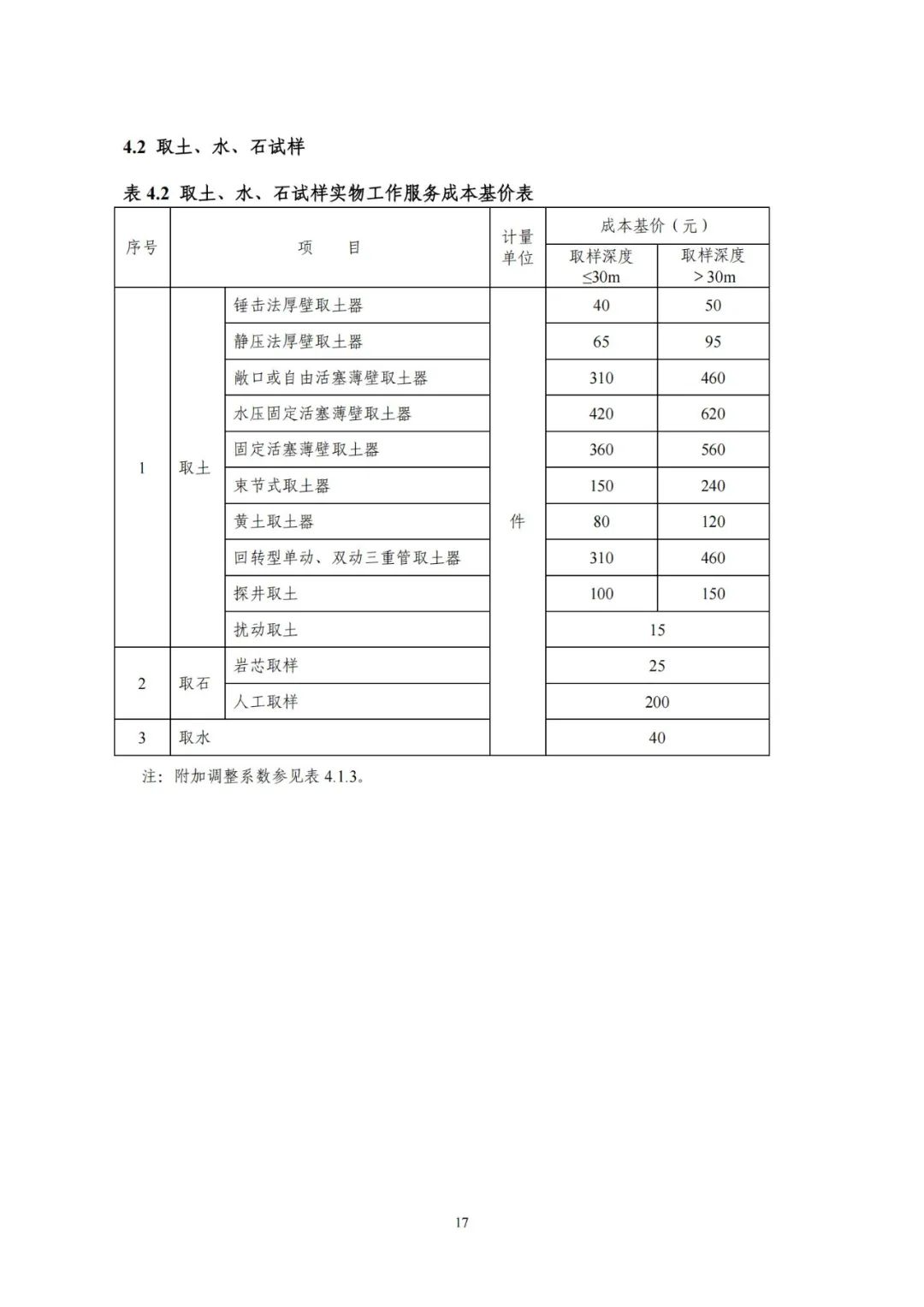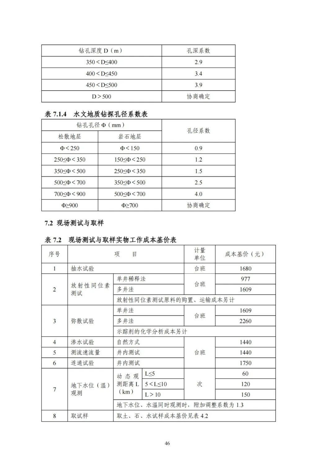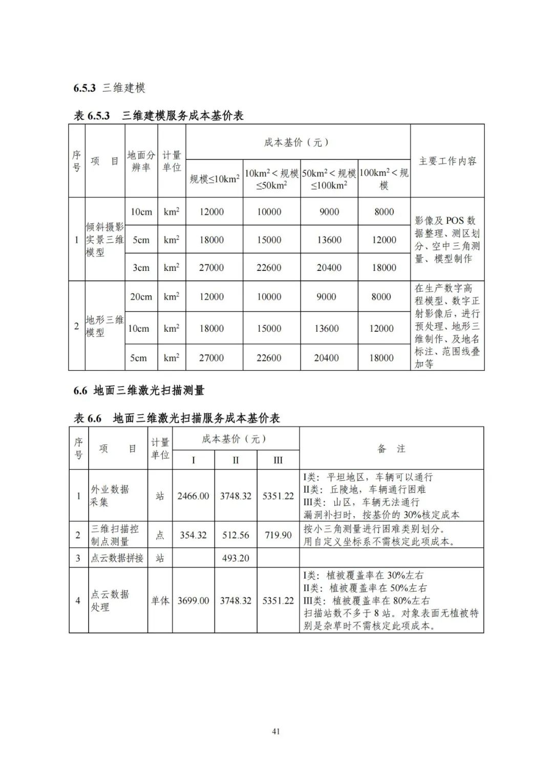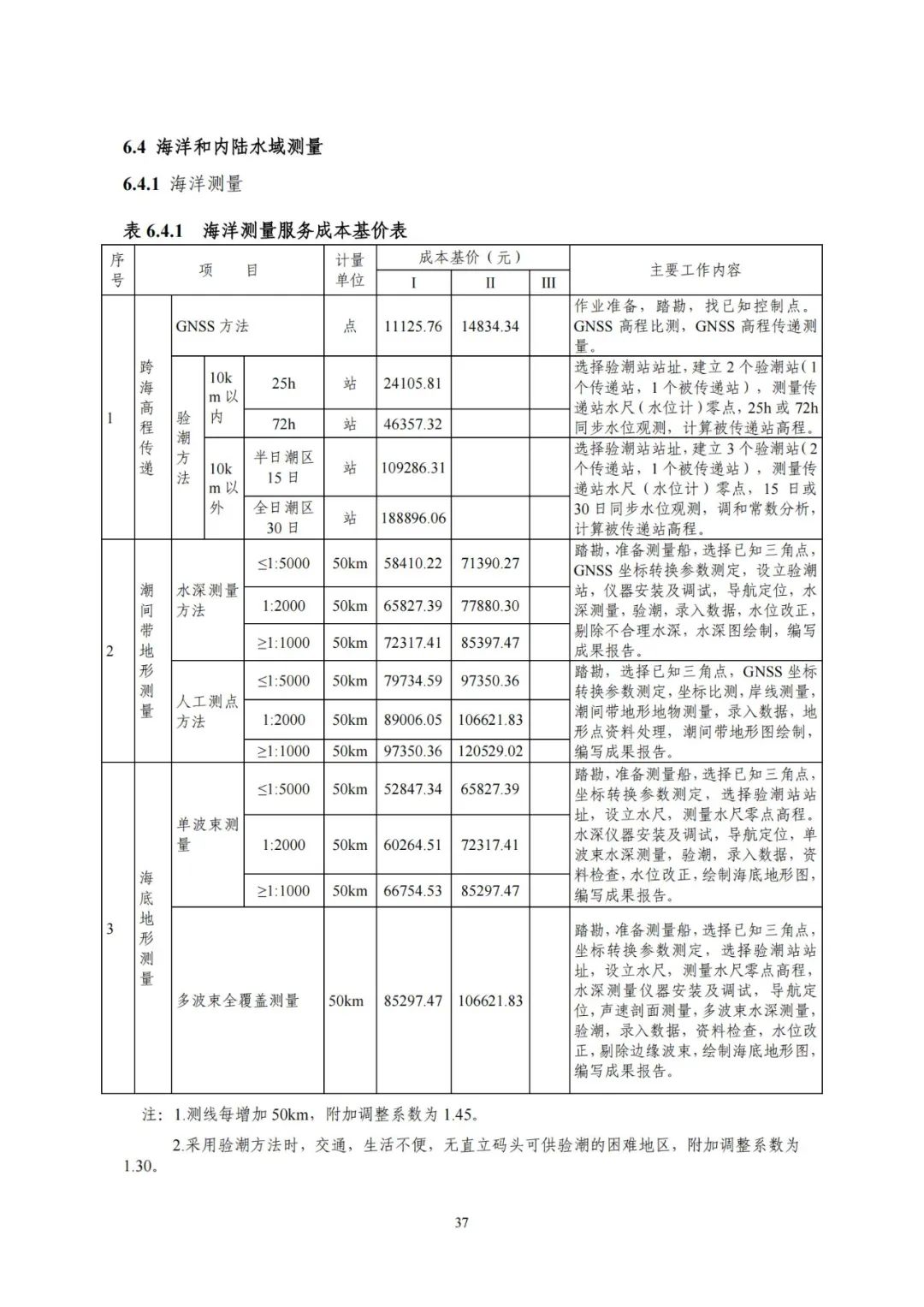 《要素信息》分為八章,相關成本測算分為工程費法(其包含巖土工程勘察、巖土工程勘察咨詢與監理、巖土工程設計和專業工程咨詢)、實物工作量法(其包含工程地質測繪與遙感地質解譯、巖土工程勘探與取樣、巖土工程試驗/檢測與監測、工程測量、水文地質勘察)及人工日法三類。除傳統的巖土工程試驗、測試和工程測量項目外,實物工作成本包括了土的易溶鹽及導熱系數等室內試驗、多功能數字式孔壓靜力觸探試驗、溫度測量等工程物探、海洋和內陸水域測量、無人機航空攝影測量、地面三維激光掃描測量、規劃測量等以新技術方法為主的專業技術服務項目。